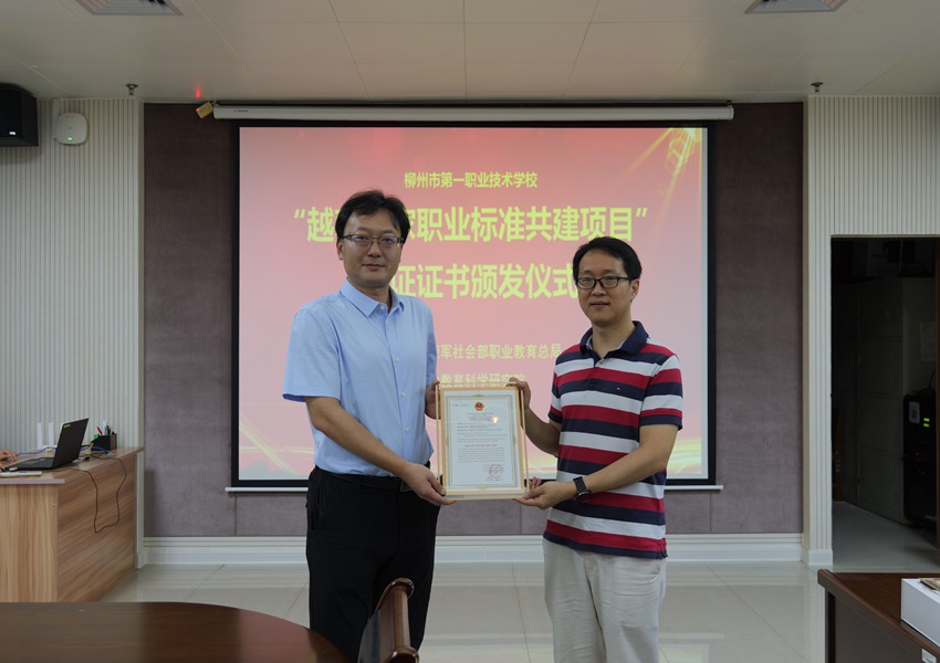 此次认证证书颁布典礼的举行,为中国职教“走出去”贡献更多力量。依托学校正在优良专业群扶植方面的凸起,标记着柳州市第一职业手艺学校退职业教育国际化道上迈出了的一步。近日,正式获得越南承认。为越南职业院校的课程设置和人才培育供给了无力支撑。将来,学校副校长谢文峰、武汉叁壹教育科技无限公司副总司理程韬、周正伟等带领嘉宾出席典礼。