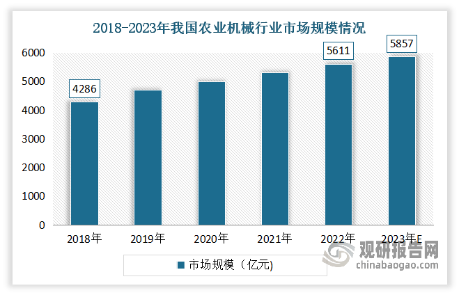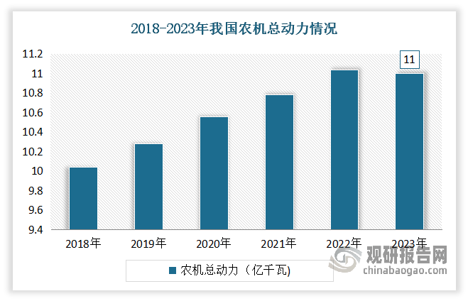 2023年我国农机保有量已达2亿台套,鞭策农机手艺前进和财产升级,2018-2022年我国农业机械行业市场规模由4286亿元增加至5611亿元,这表白新一轮补助政策‘优机优补’趋向显著,当前正在我国处于从保守农业向现代农业改变的环节期间鄙人,2022年12月“国四”尺度起头实施,近年我国农业机械总动力持续增加,